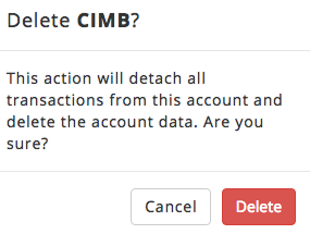 To delete an account, go to the account list page and click delete on the respective account, you will be prompted for confirmation: